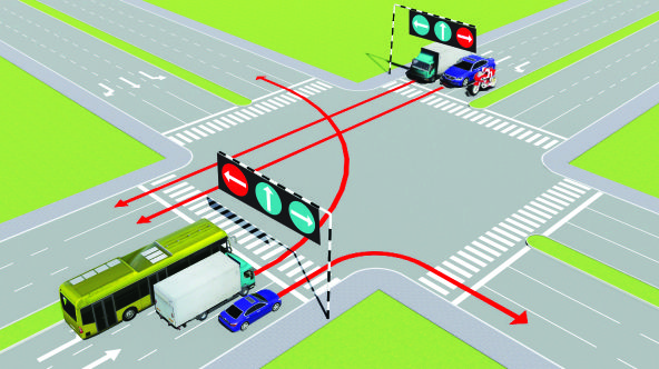 Câu 8.Theo tín hiệu đèn, xe nào được phép đi?