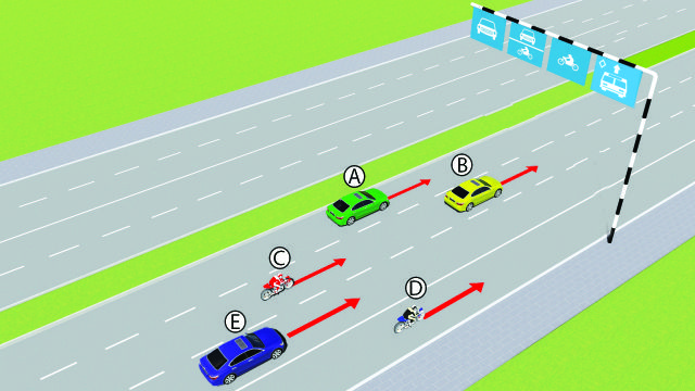 3. Trên đường có nhiều làn đường cho xe đi cùng chiều được phân biệt bằng vạch kẻ phân làn đường, người điều khiển phương tiện phải cho xe đi như thế nào?