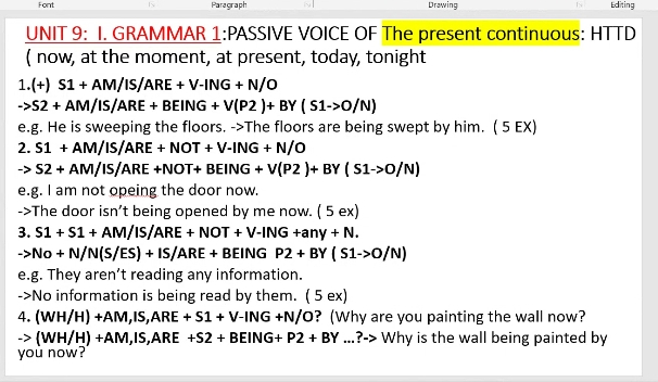 Đặt 5 ví dụ cho từng ý: Passive voice of the present continuous