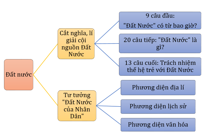 - Tác giả bày tỏ suy nghĩ và tình cảm tha thiết, sâu sắc của bản thân về đất nước trên nhiều bình diện địa lí, lịch sử, văn hóa, phong tục,… với tư tưởng bao trùm: Đất Nước của Nhân dân.