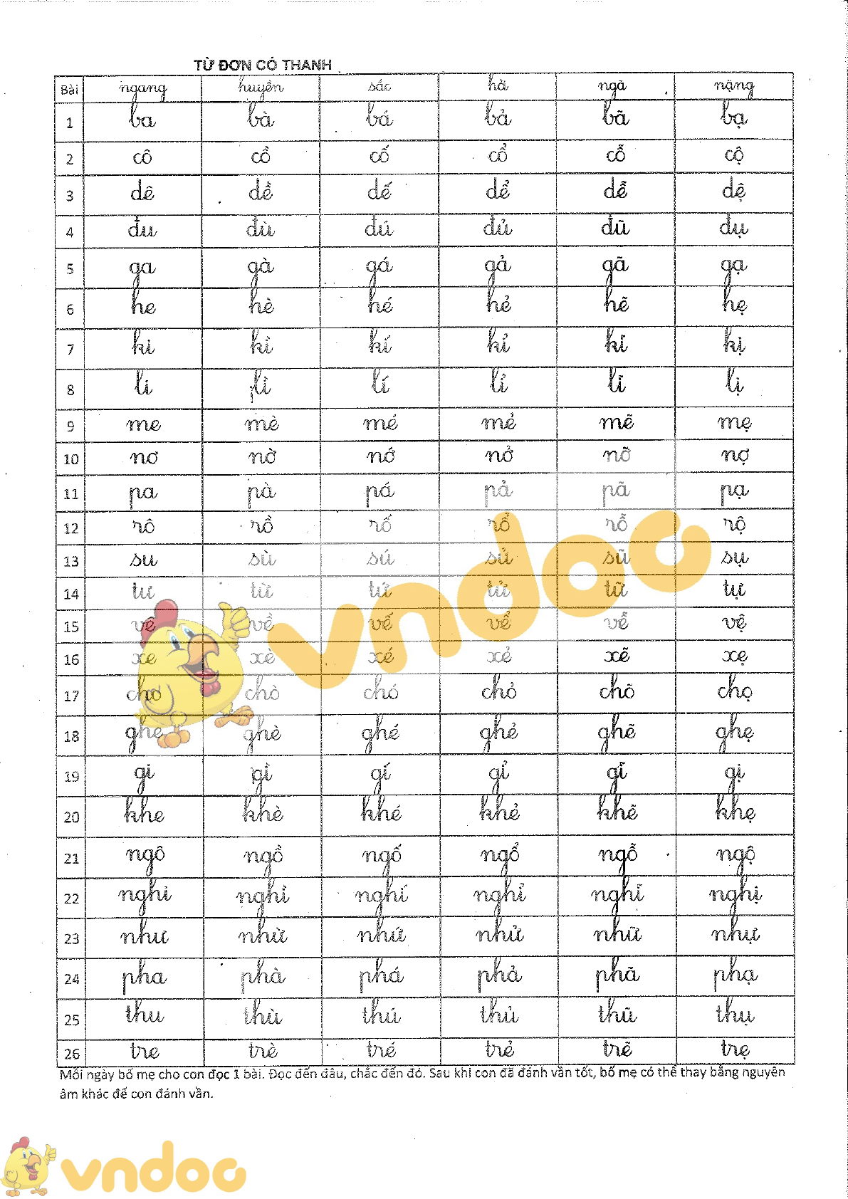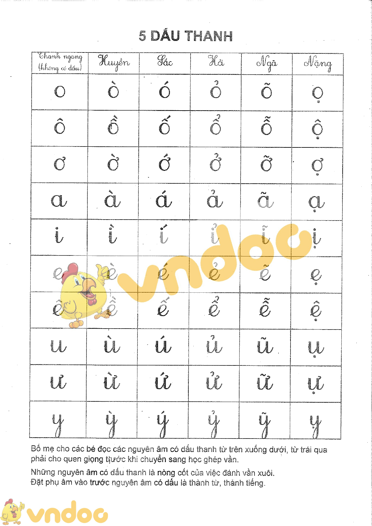 05 Dấu thanh trong tiếng Việt là bộ tổng hợp các bài tập dạy đánh dấu thanh cho các bé được VnDoc sưu tầm, tổng hợp gửi đến các bậc phụ huynh cùng các thầy cô tham khảo định hướng cách đặt dấu thanh cho tiếng Việt phải tuân thủ một số quy tắc nhất định. Mời các bạn tham khảo.