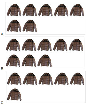 Trong hình dưới đây, hình nào có số áo bằng với số áo bé đã đếm được?