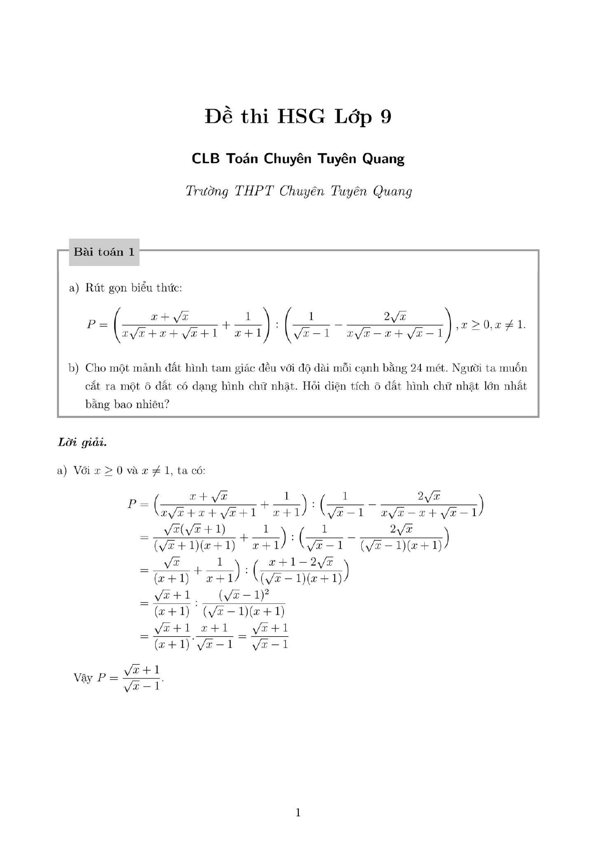 Đề chọn học sinh giỏi Toán 9 năm 2024 – 2025 sở GD&ĐT Tuyên Quang được thiết kế bám sát chương trình, giúp học sinh phát triển tư duy và kỹ năng giải toán nâng cao bao gồm cả đáp án và lời giải chi tiết, nhằm hỗ trợ quý thầy cô tham khảo, hướng dẫn ôn tập cho học sinh một cách hiệu quả.