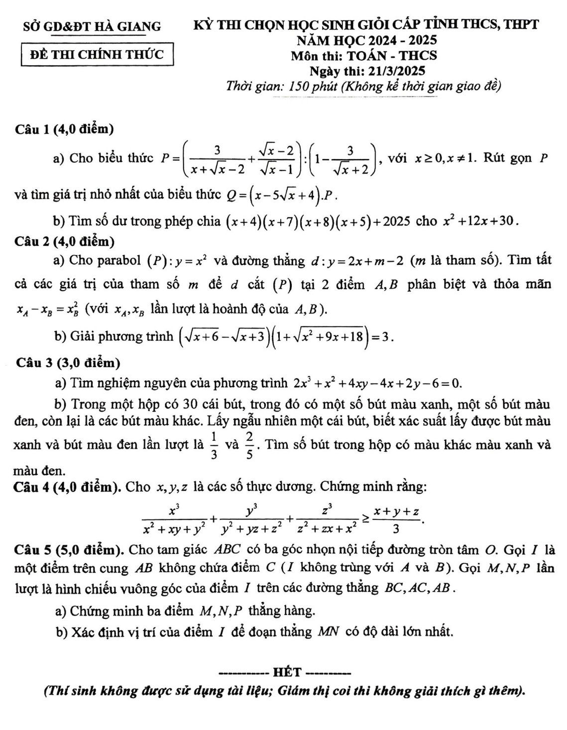Đề chọn học sinh giỏi tỉnh Toán THCS năm 2024 – 2025 sở GD&ĐT Hà Giang