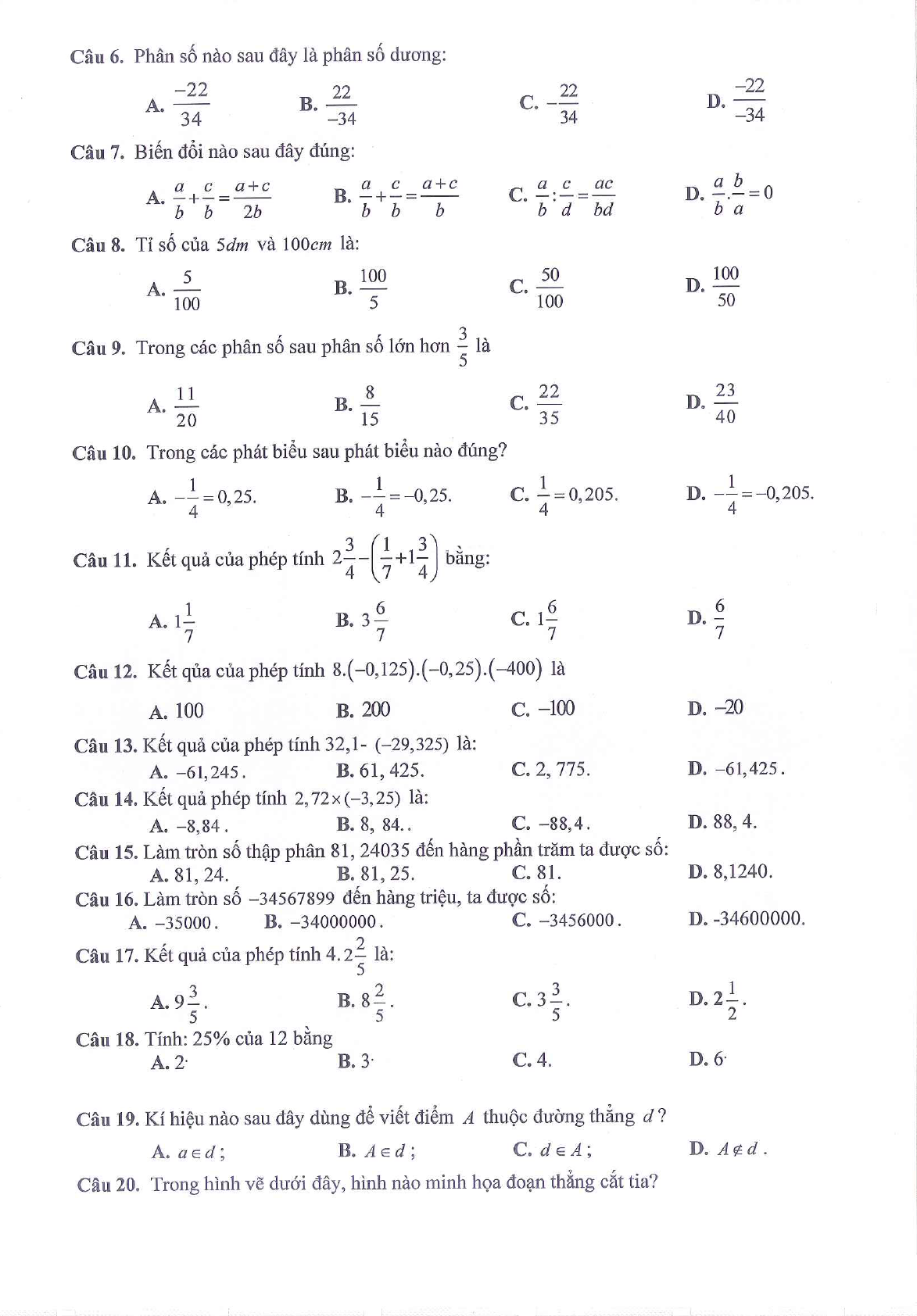 Đề thi cuối học kì 2 Toán 6 năm 2025