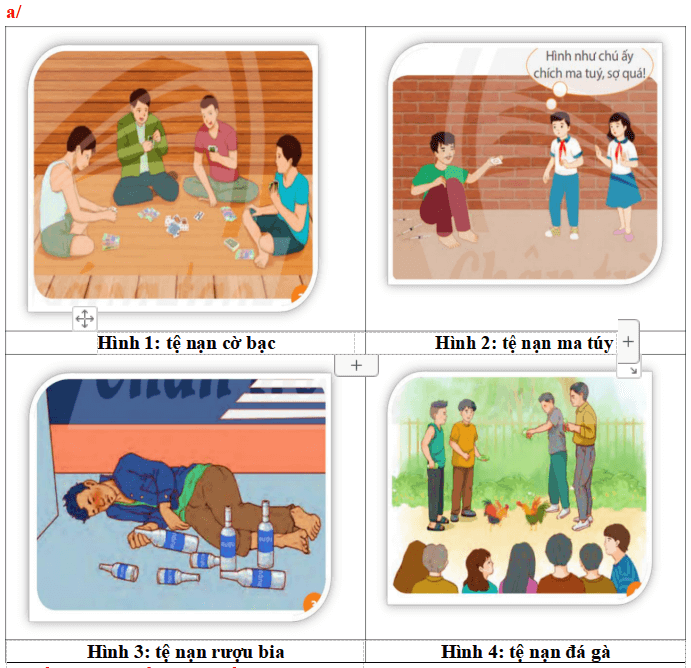 a/ Em hãy cho biết nội dung của 4 bức hình trên?