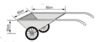 Bài 5: Hình vẽ dưới đây mô tả một chiếc xe rùa hai bánh có thùng chứa là hình lăng trụ đứng tam giác. Hãy tính thể tích thùng chứa