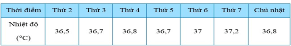Câu 16: Thân nhiệt (°C) của bạn An trong cùng khung giờ 7h sáng các ngày trong tuần được ghi lại trong bảng sau: