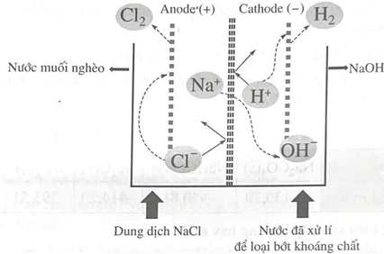 - Dung dịch NaCl đi vào có nồng độ 300 g/L, nước muối nghèo đi ra có nồng độ 220 g/L. Vậy với mỗi lít nước muối bão hòa ban đầu sẽ thu được tối đa khoảng 54,7 gam NaOH (hiệu suất 100%).