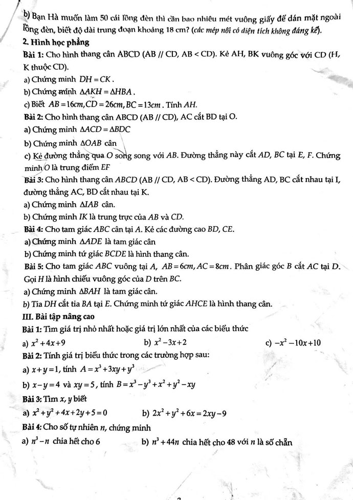 Đề cương ôn tập kiểm tra giữa kì I Toán 8