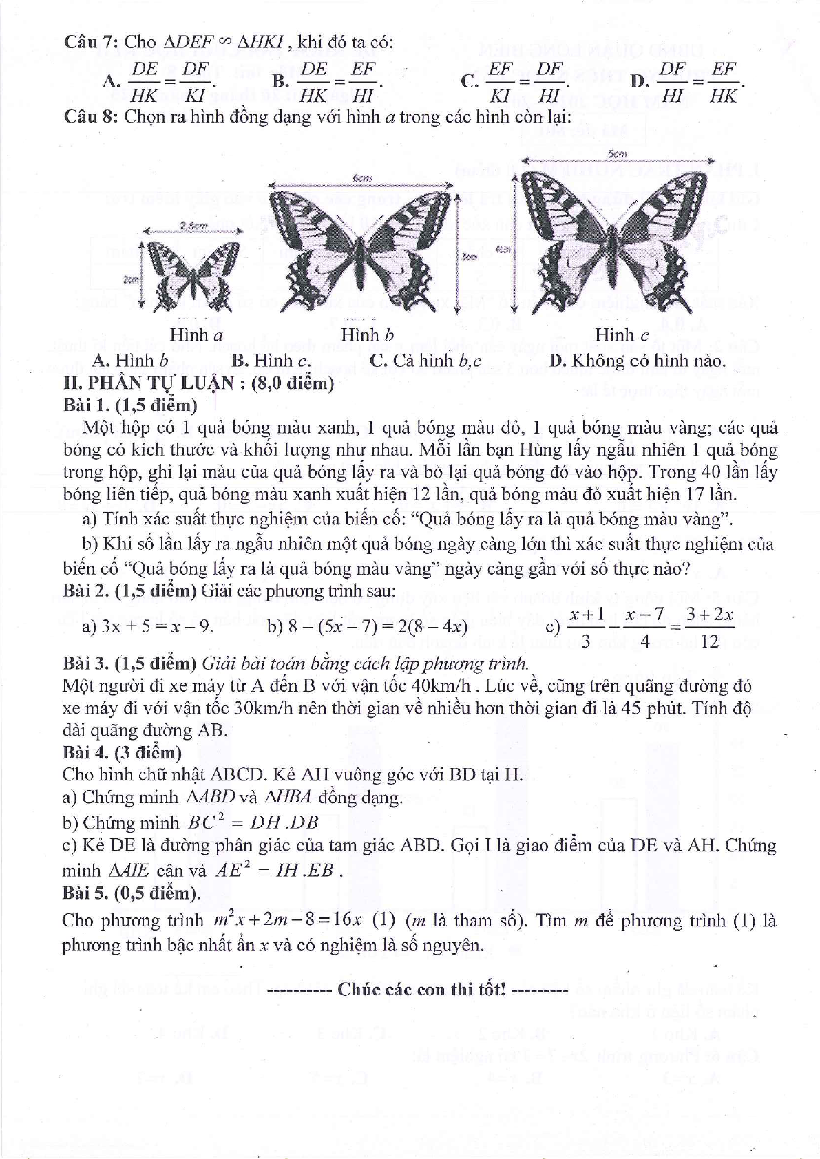 Đề thi cuối học kì 2 Toán 8 CTST cấu trúc mới 2025