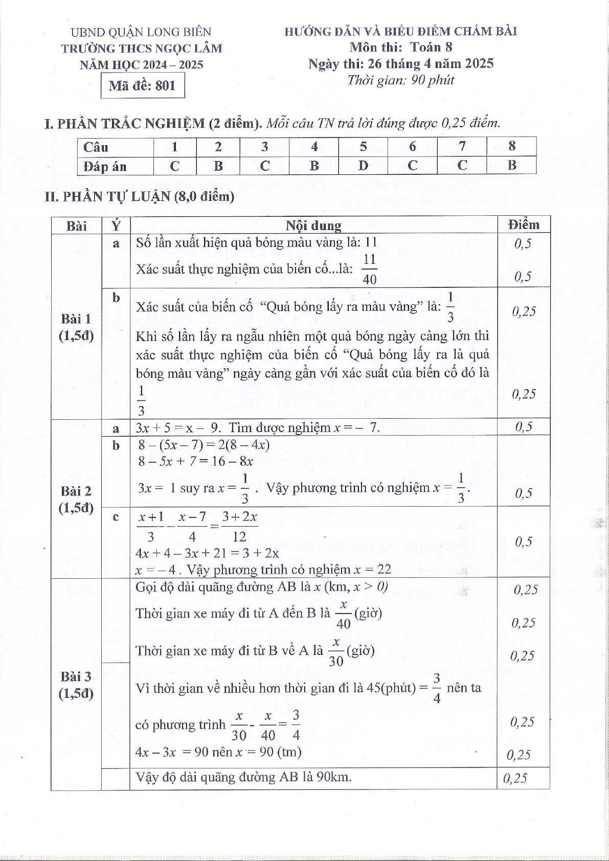 Đề học kì 2 Toán 8 trường THCS Ngọc Lâm, Hà Nội năm 2024 - 2025
