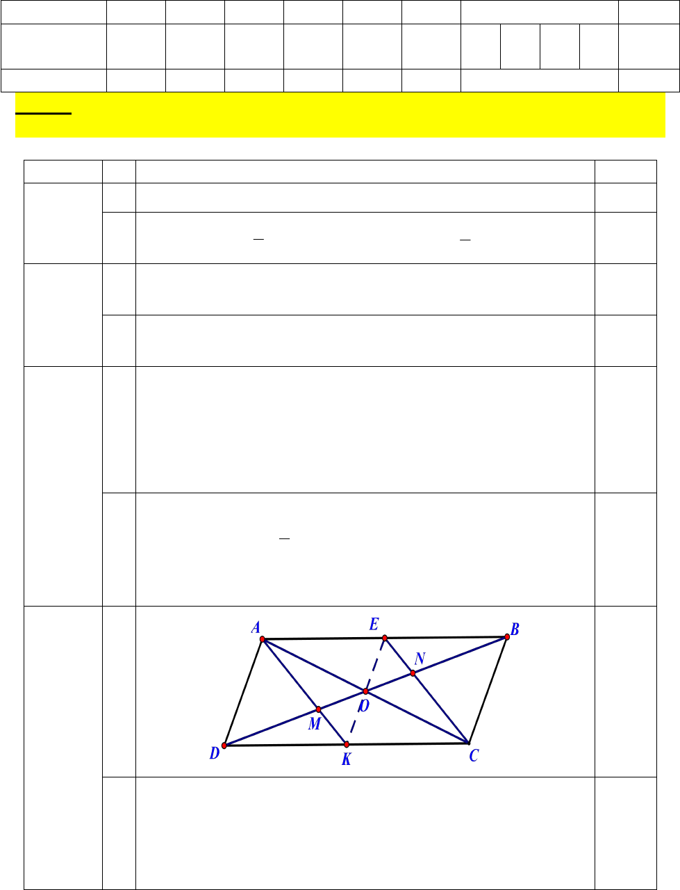 Câu 12 (2,5 điểm). Cho hình bình hành ABCD (AB >AD). Gọi E và K lần lượt là