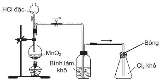 Trong phòng thí nghiệm, khí chlorine được điều chế, làm khô và thu vào bình theo sơ đồ dưới đây.