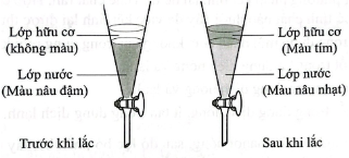 d) Sự khác nhau về màu sắc của lớp nước và lớp hữu cơ trong dụng cụ trước và sau khi lắc là do iodine tan tốt trong hexane hơn, nên ở lớp hữu cơ nồng độ iodine cao hơn và tạo thành dung dịch có màu tím. Đúng||Sai