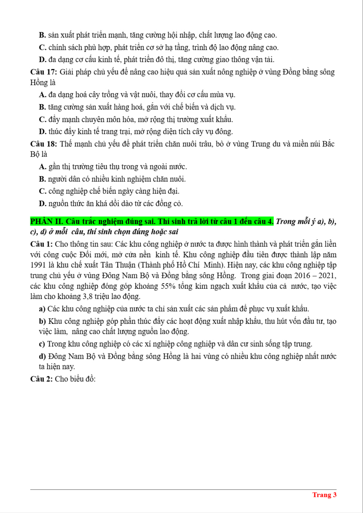 Đề khảo sát Địa lí 12 năm 2025 Sở GD&ĐT Hà Nội có đáp án được VnDoc.com sưu tầm và xin gửi tới bạn đọc cùng tham khảo. Đề thi được biên soạn theo cấu trúc đề thi mới. Đề thi gồm có 18 câu hỏi trắc nghiệm nhiều phương án lựa chọn, 4 câu hỏi trắc nghiệm đúng sai và 6 câu hỏi trả lời ngắn. Thí sinh làm bài trong thời gian 50 phút. Đề có đáp án và lời giải chi tiết kèm theo. Mời các bạn cùng theo dõi chi tiết bài viết dưới đây để có thêm tài liệu ôn thi khảo sát chất lượng lớp 12 nhé.