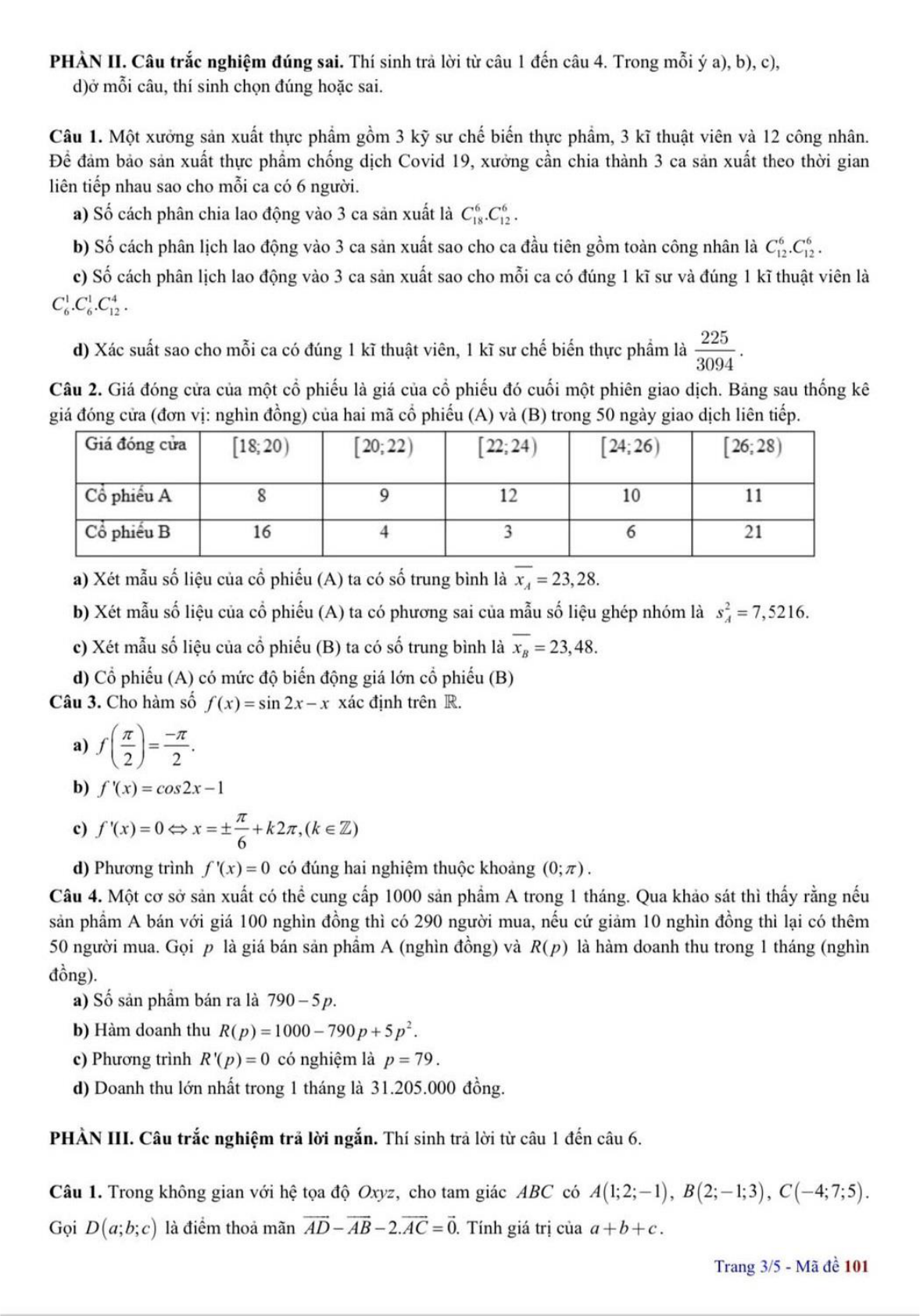 Đề khảo sát Toán 12 năm 2025 lần 1 trường THPT chuyên Hạ Long, Quảng Ninh được VnDoc.com tổng hợp và xin gửi tới bạn đọc cùng tham khảo. Đề gồm có 12 câu hỏi trắc nghiệm nhiều phương án lựa chọn, 4 câu hỏi trắc nghiệm đúng sai và 6 câu hỏi trả lời ngắn. Thí sinh làm đề trong thời gian 90 phút. Mời các bạn cùng theo dõi chi tiết bài viết dưới đây để có thêm tài liệu ôn thi và khảo sát chất lượng lớp 12 nhé.