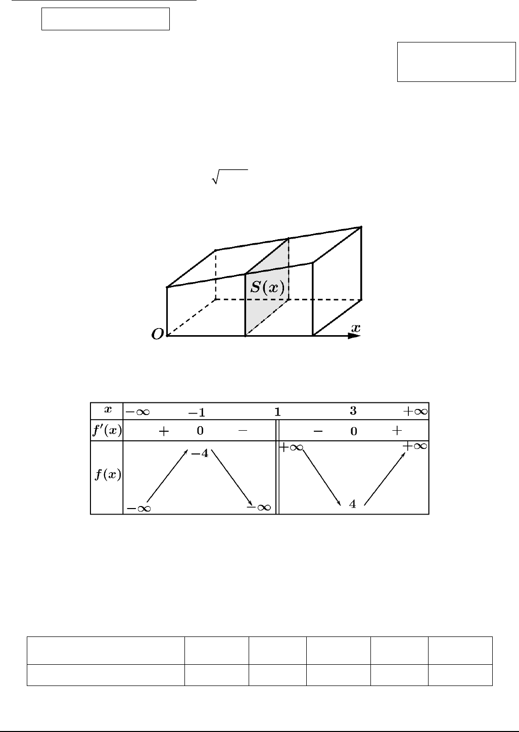 có bảng biến thiên như hình vẽ: