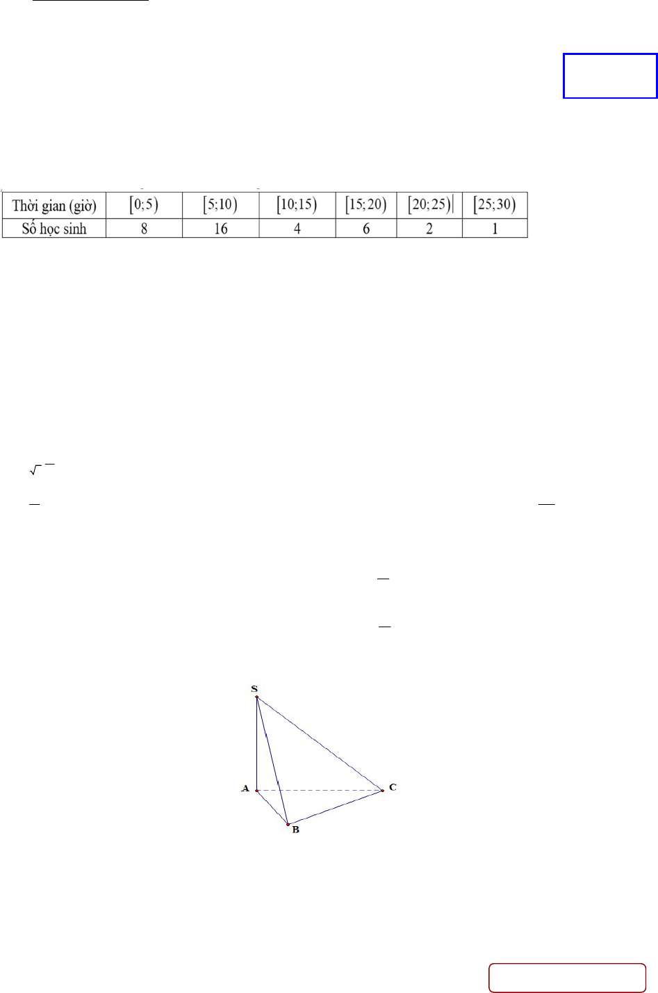 Câu 1. Số Tìm hiểu thời gian xem ti vi trong tuần trước của một số học sinh thu được kết quả sau: