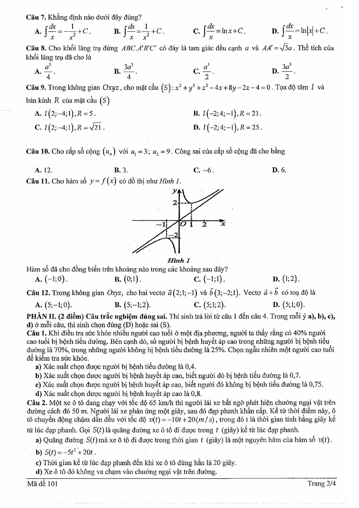 Đề thi khảo sát Toán 12 năm 2025 trường THPT Nguyễn Quốc Trinh, Hà Nội có đáp án được VnDoc.com tổng hợp và xin gửi tới bạn đọc cùng tham khảo. Bài viết được tổng hợp gồm có 2 mã đề thi, mỗi đề gồm có 12 câu hỏi trắc nghiệm nhiều phương án lựa chọn, 4 câu hỏi trắc nghiệm đúng sai và 6 câu hỏi trả lời ngắn. Thí sinh làm đề trong thời gian 90 phút. Đề có đáp án và lời giải chi tiết kèm theo. Mời các bạn cùng theo dõi chi tiết bài viết dưới đây để có thêm tài liệu ôn thi và khảo sát chất lượng lớp 12 nhé.