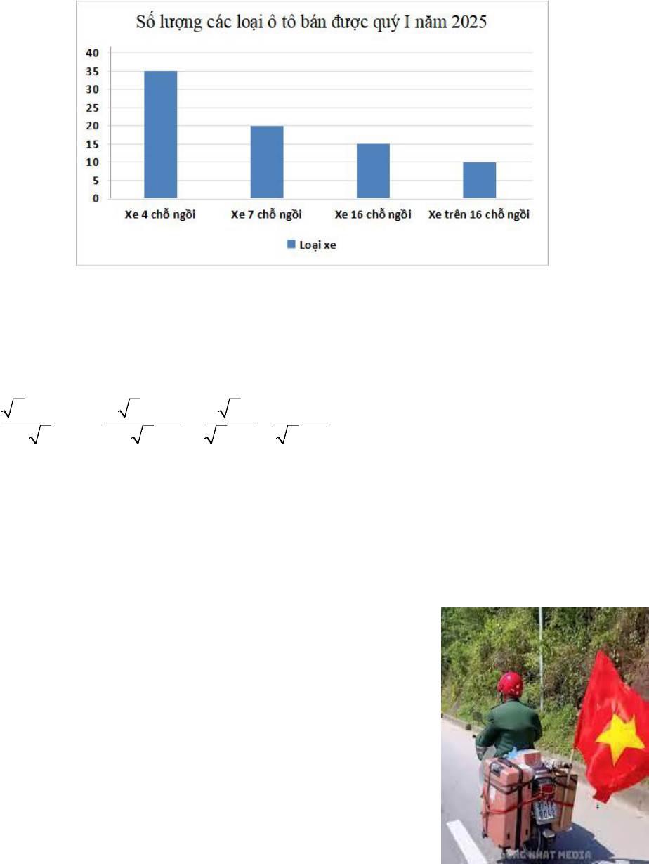 1) Biểu đồ sau cho biết số lượng các loại xe ô tô một cửa hàng bán được trong quý I năm 2025: