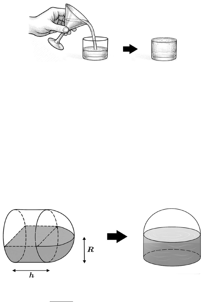 hình vẽ minh họa sau. Khi bình nước nằm ngang, mực nước trong bình có độ cao bằng bán kính đáy của