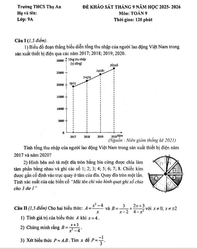 Đề khảo sát Toán 9 trường THCS Thọ An – Hà Nội tháng 9 năm 2025