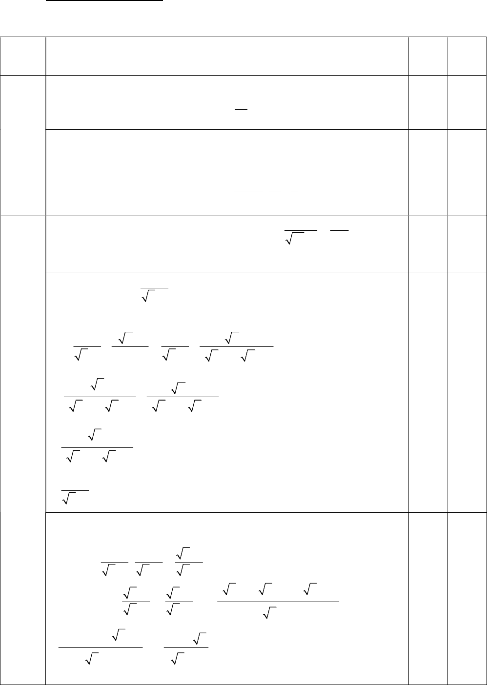 Câu Đáp án Điểm Ghi