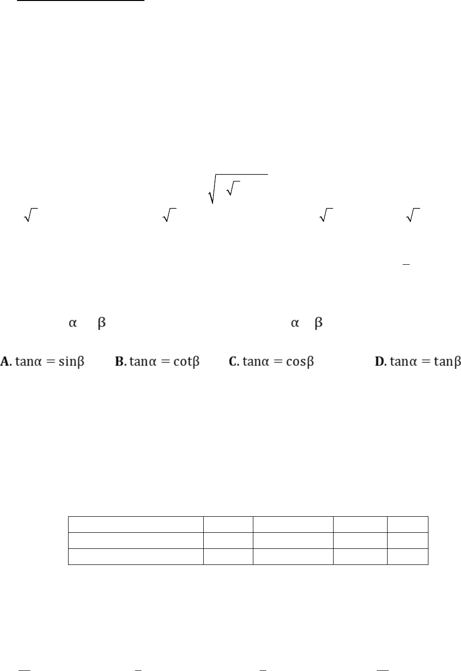 Câu 5. Cho và là hai góc nhọn bất kỳ thoả mãn + = 90