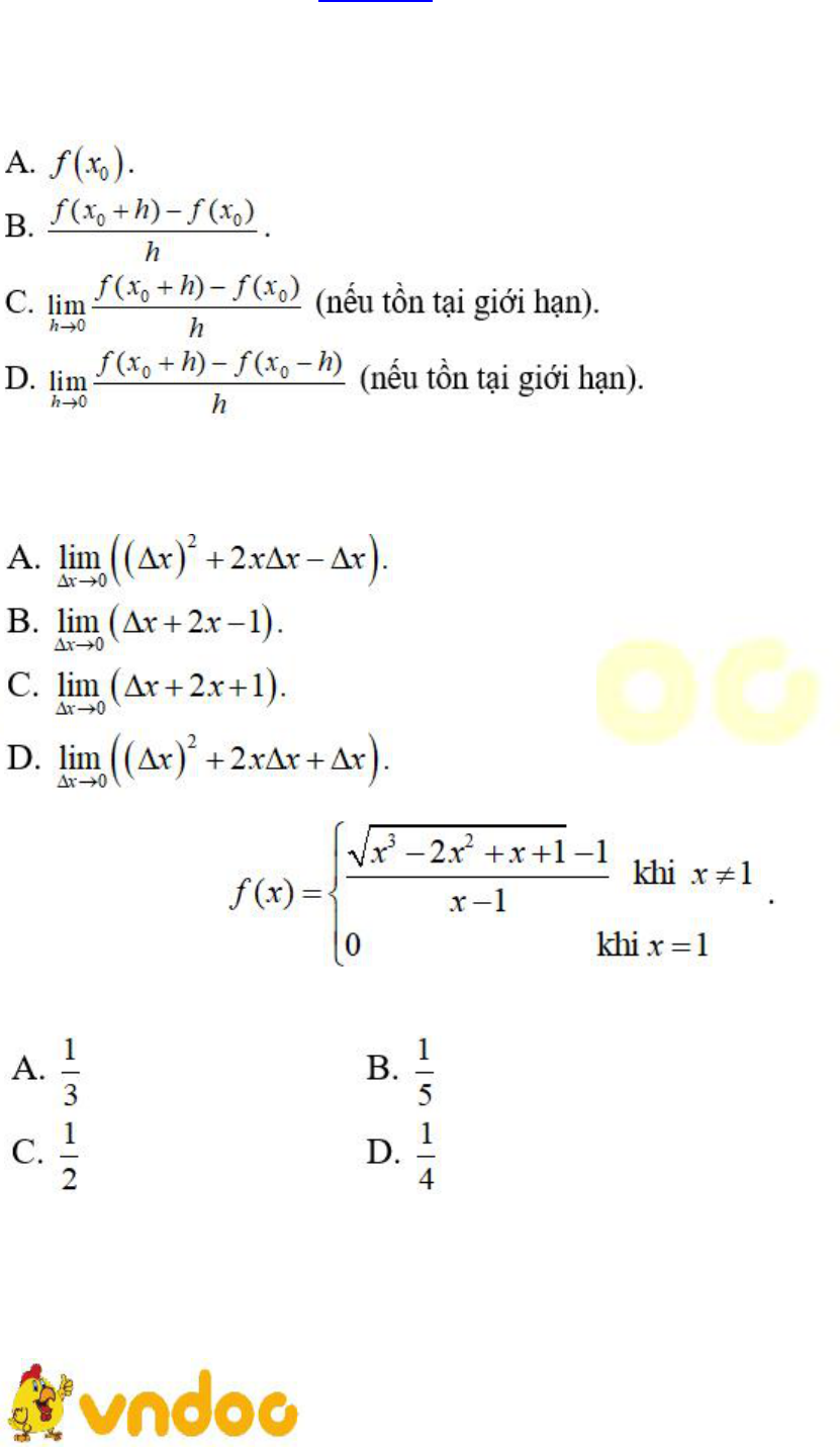 Trên đây VnDoc.com vừa giới thiệu tới các bạn Đề kiểm tra 1 tiết Chương 5 Đại số lớp 11 - Đề 2, mong rằng qua bài viết này các bạn có thể học tập tốt hơn môn Toán lớp 11. Mời các bạn cùng tham khảo thêm kiến thức các môn Ngữ văn 11, Tiếng Anh 11, đề thi học kì 1 lớp 11, đề thi học kì 2 lớp 11...