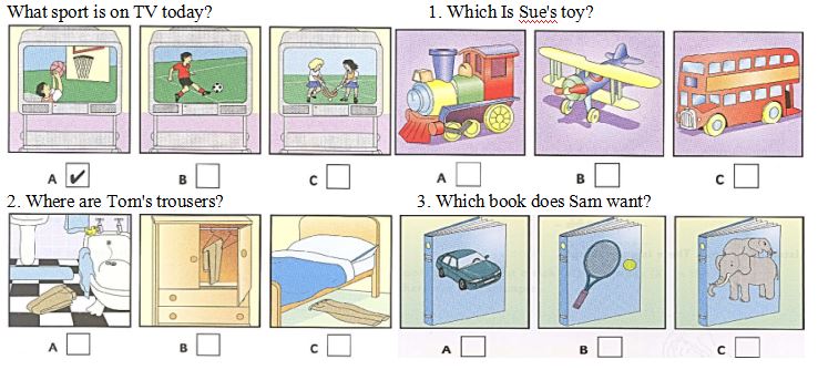 B. Listen and tick (V) the box. There is one example. Part 1.3 /st6