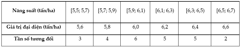 Kết quả khảo sát năng suất (đơn vị: tấn/ha) của một số thửa ruộng được minh họa ở biểu đồ sau: