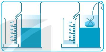 - Ban đầu chưa cho vật, bình chia độ không có nước.