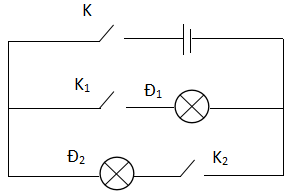 Cho sơ đồ mạch điện như hình vẽ. Trong trường hợp nào có đèn Đ1, Đ2 sáng?