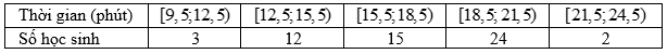 Khảo sát thời gian dành cho việc tự học ở nhà mỗi ngày của học sinh lớp 12A1 và 12A2 của trường trung học phổ thông X, thu được mẫu số liệu ghép nhóm sau: