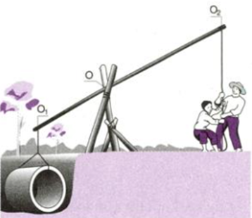 Dùng xà beng để bẩy vật nặng lên như hình dưới. Phải đặt điểm tựa ở đâu để bẩy vật lên dễ nhất?