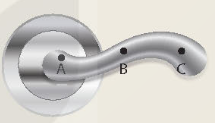 Vị trí tác dụng lực ở điểm B và C trong hình có thể làm cho tay nắm cửa quay quanh trục của nó.