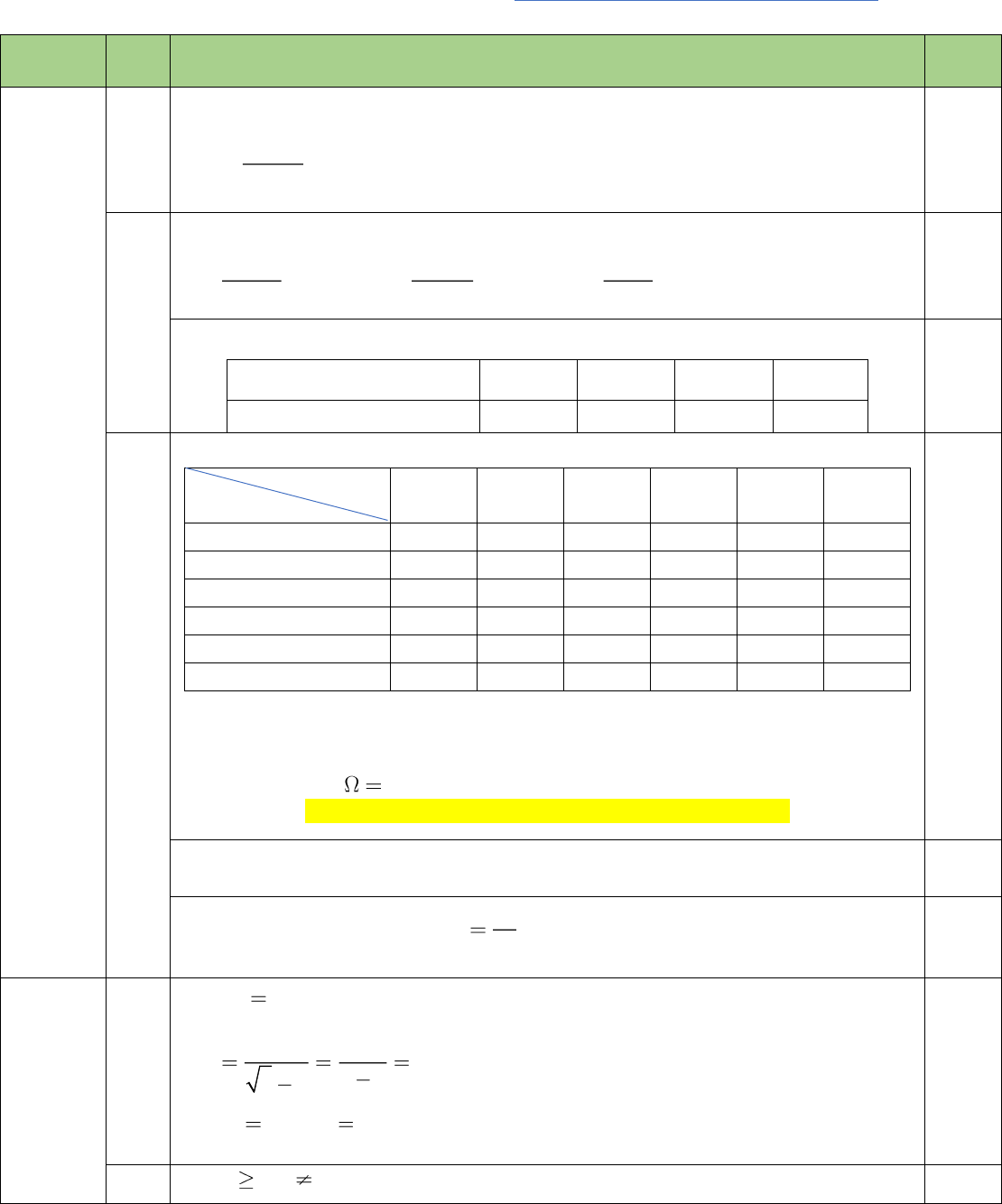 (Nếu HS không lập bảng kết quả có thể không trừ điểm)