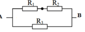 Câu 21 (0,5 điểm): Cho mạch điện như hình vẽ. Biết R1 = 4 Ω; R2 = 6 Ω; R3 = 10 Ω. Đặt vào hai đầu AB một hiệu điện thế U = 10 V.