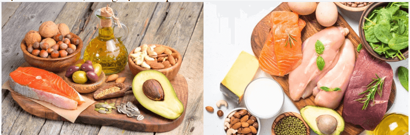 Câu 22 (0,5 điểm): Quan sát hình và chỉ ra những loại thực phẩm giàu chất béo. Vậy chất béo là gì? Chất béo có vai trò gì đối với cơ thể người và sử dụng chất béo như thế nào để có lợi cho sức khỏe, chống bệnh béo phì?
