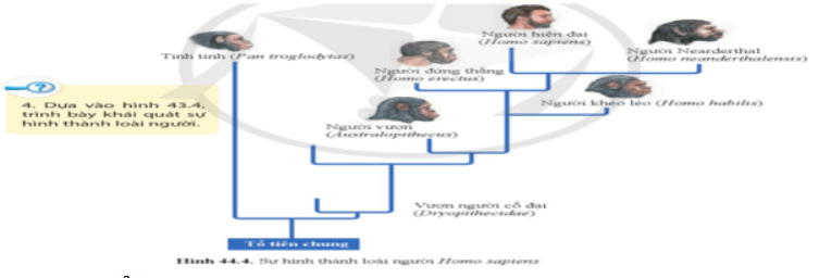 b. Dựa vào hình 43.4, trình bày khái quát sự hình thành loài người.