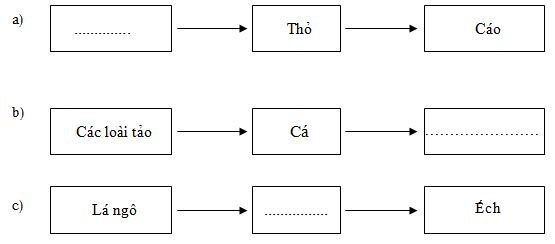 12. (1,5 điểm): Hãy điền vào chỗ … trong các sơ đồ chuỗi thức ăn dưới đây cho phù hợp.