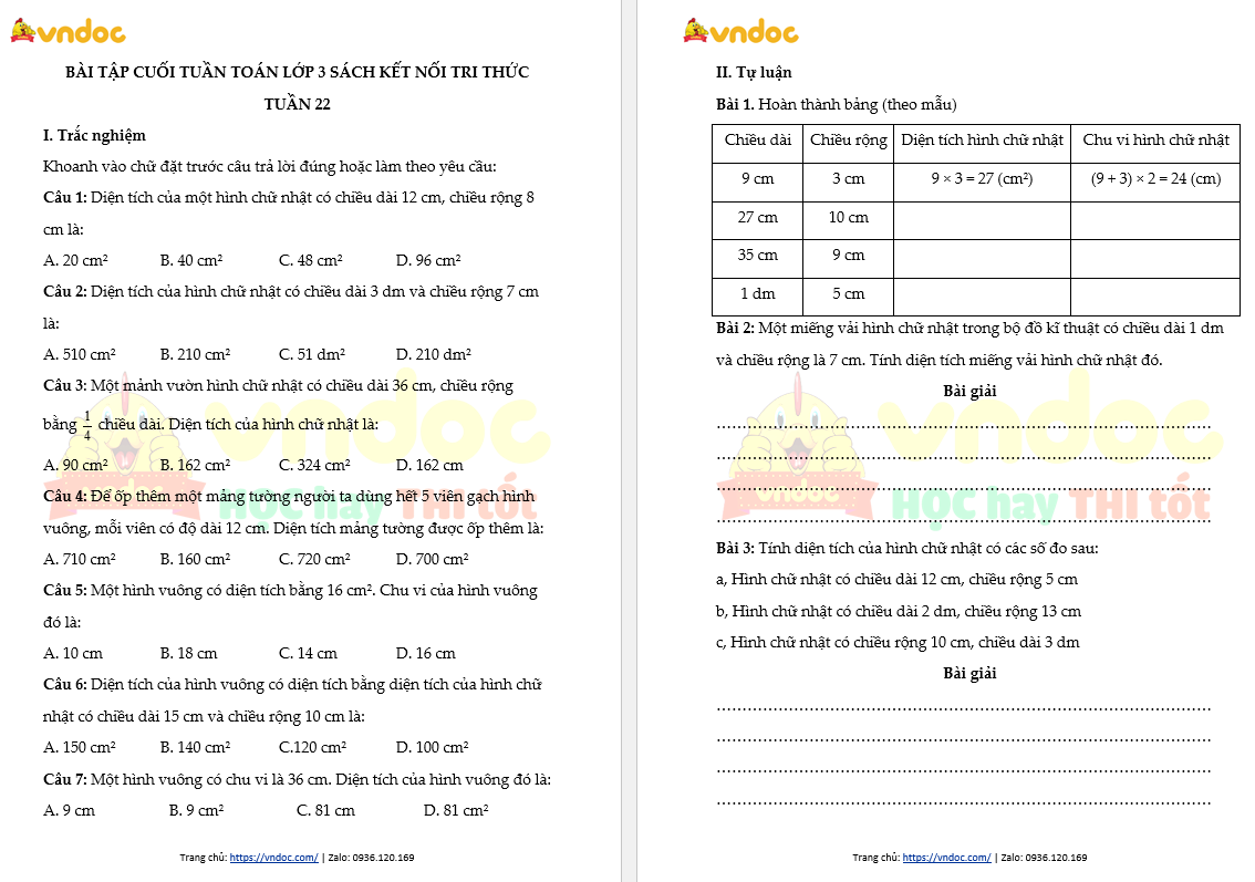 - Xem thêm: Bài tập cuối tuần Toán lớp 3 Kết nối - Tuần 22 (nâng cao)