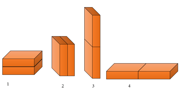 Các viên gạch giống hệt nhau được xếp trên nền nhà như trong hình vẽ. Trường hợp nào áp suất do các viên gạch tác dụng lên nền nhà là lớn nhất?