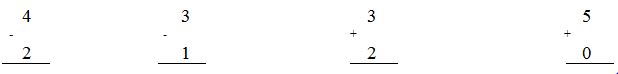 4 - 2 = 2 3 - 1 = 2 3 + 2 = 5 5 + 0 = 5