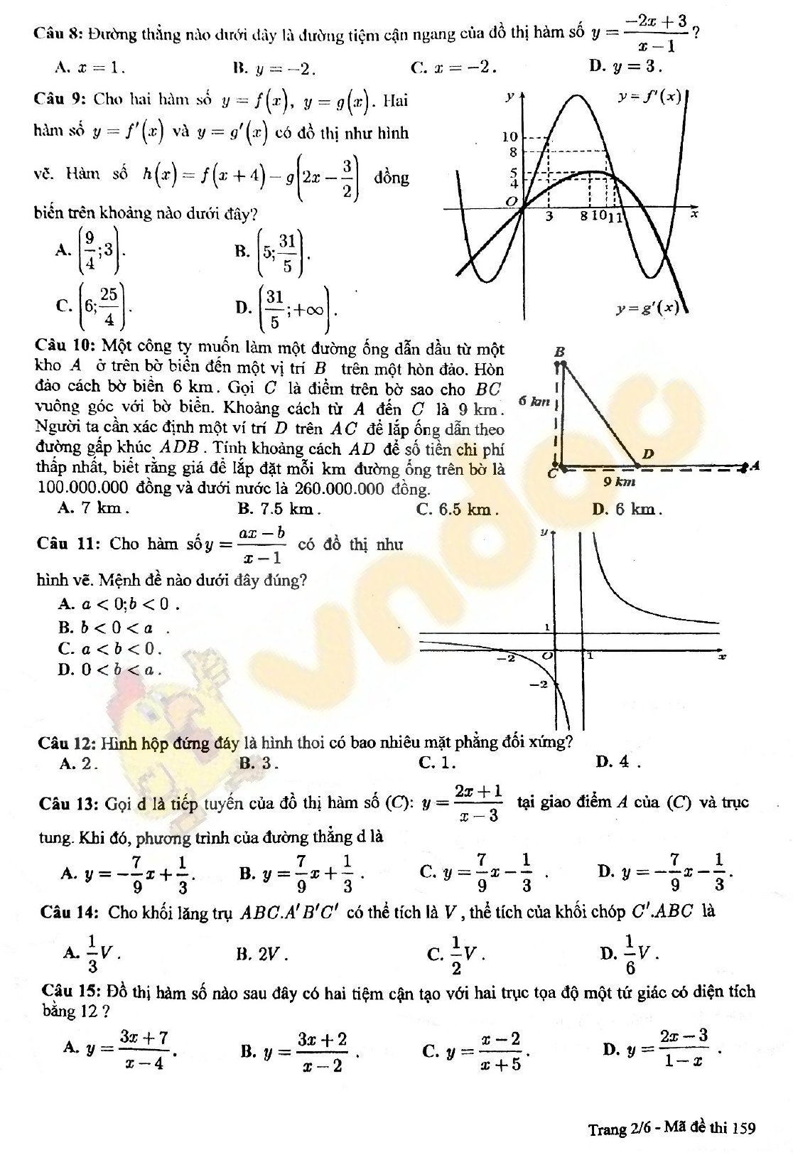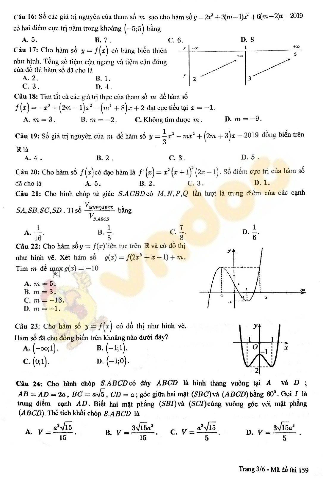 Đề kiểm tra giữa học kì 1 môn Toán lớp 12 năm học 2019-2020 trường THPT Việt Nam- Ba Lan có kèm theo đáp án gồm 50 câu trắc nghiệm, giúp các em ôn luyện và nắm vững kiến thức môn Toán lớp 12.