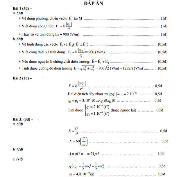 Đáp án đề kiểm tra giữa học kì 1 môn Vật lý lớp 11