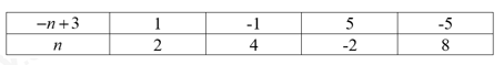 \(- 3 + \dfrac{5}{{ - n + 3}} \in \mathbb{Z} \Rightarrow \dfrac{5}{{ - n + 3}} \in \mathbb{Z} \Rightarrow - n + 3 \in \left\{ { \pm 1; \pm 5} \right\}\)