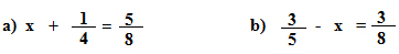 a) 1/2 + 3/4 = b) 3/5 - 3/8 =