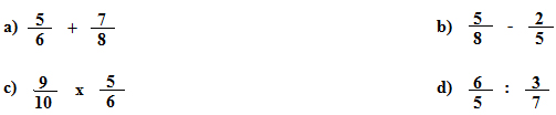 c) 3/10 x 4/9 = d) 5/8 : 3/2 =